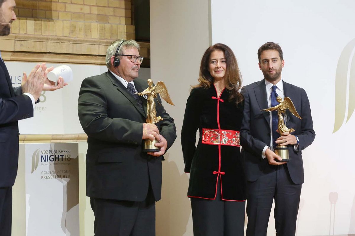 On behalf of Daphne’s husband and sons, and the rest Daphne’s extended family, I want to thank Verband Deutscher Zeitschriftenverleger. We are deeply honoured by the Golden Victoria award.