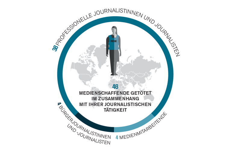 Im Zusammenhang mit ihrer journalistischen Tätigkeit wurden in diesem Jahr 46 Medienschaffende getötet. Fast zwei Drittel davon wurden gezielt wegen ihrer Arbeit ermordet. Das geht aus der Jahresbilanz der Pressefreiheit 2021 hervor.