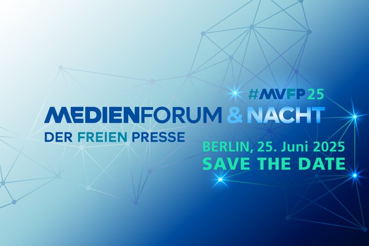 Merken Sie sich den 25. Juni 2025 vor und freuen Sie sich auf ein kompaktes Programm zur Zukunft der freien Presse im Allianz Forum mit den strategischen Themen unserer Branche und der Verleihung des Pressefreiheitspreises des MVFP.
