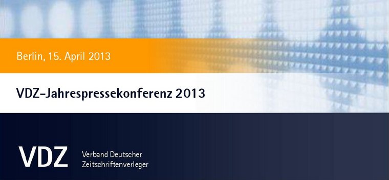Die VDZ-Jahrespressekonferenz 2013 findet am Montag, den 15. April 2013 um 10.00 Uhr, in Berlin statt.