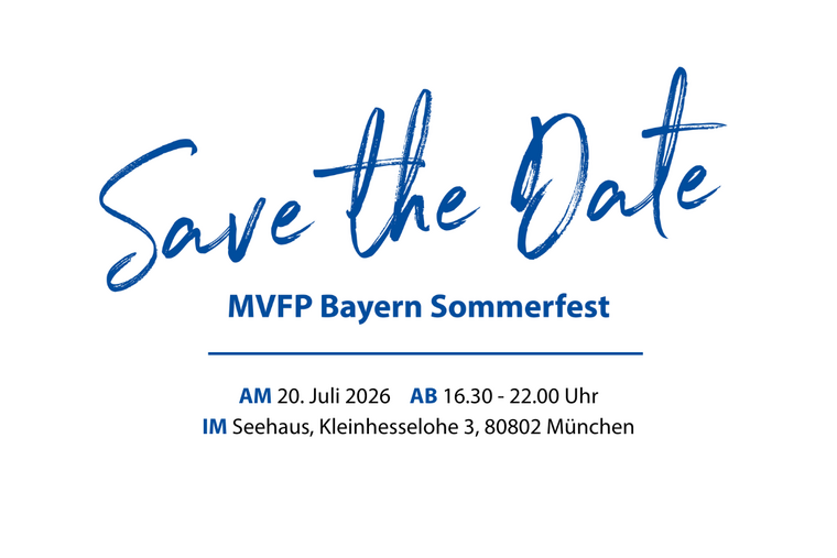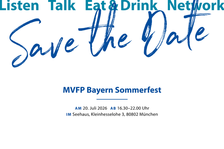 Wir freuen uns darauf, Sie im Juli beim Sommerfest des MVFP Bayern wiederzusehen. Merken Sie sich den Termin am besten schon jetzt vor. Die Veranstaltung bietet eine ideale Gelegenheit, sich mit Kolleginnen und Kollegen sowie mit Gästen aus Wirtschaft, Politik und Medien auszutauschen.