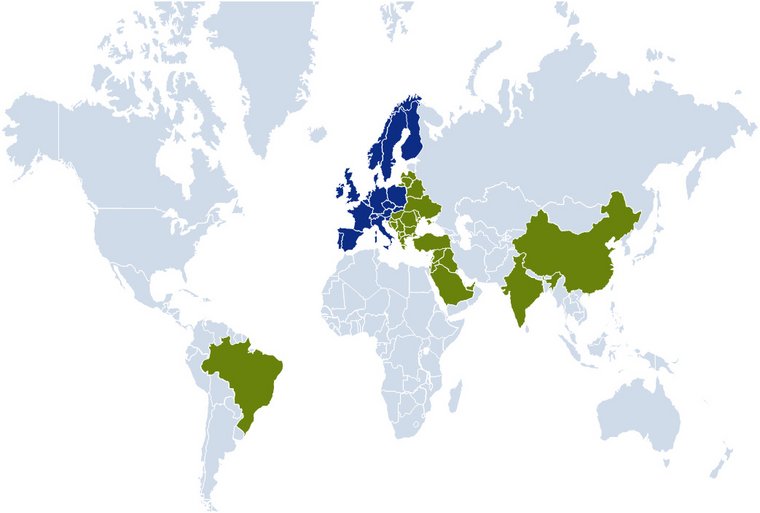 Die internationalen Aktivitäten deutscher Verlage erstrecken sich auf nahezu alle Weltregionen. Osteuropa, Wie die Studie zeigt, steht dabei Indien im Zentrum der Expansionspläne vieler deutscher Verlagshäuser: 18 Prozent aller Befragten wollen bis 2015 mit Printprodukten auf dem indischen Markt Fuß fassen, und immerhin fast ein Viertel (24 Prozent) plant dies mit digitalen Verlagsangeboten. Speziell im Digitalbereich gelten zudem Brasilien, China und der Nahe Osten ebenfalls als relativ attraktiv: Jeweils zwölf Prozent der befragten Verlage planen, bis 2015 in mindestens einen dieser Auslandsmärkte zu expandieren.