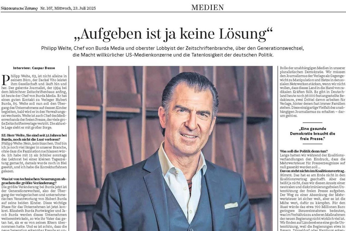 Süddeutsche Zeitung | Philipp Welte: „Aufgeben ist ja keine Lösung“