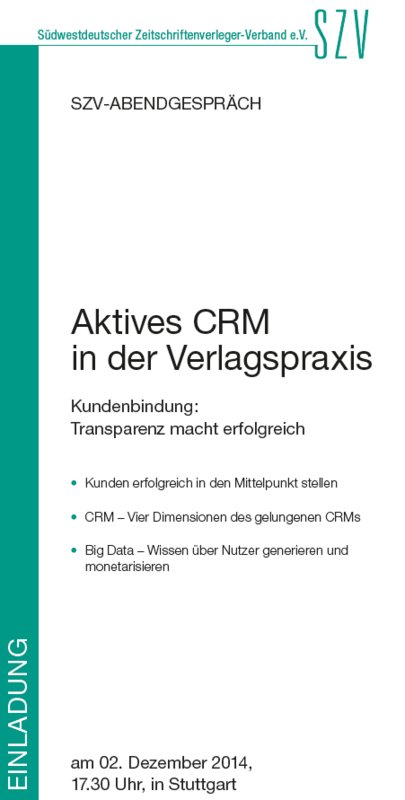 SZV-Abendgespräch: Aktives CRM in der Verlagspraxis