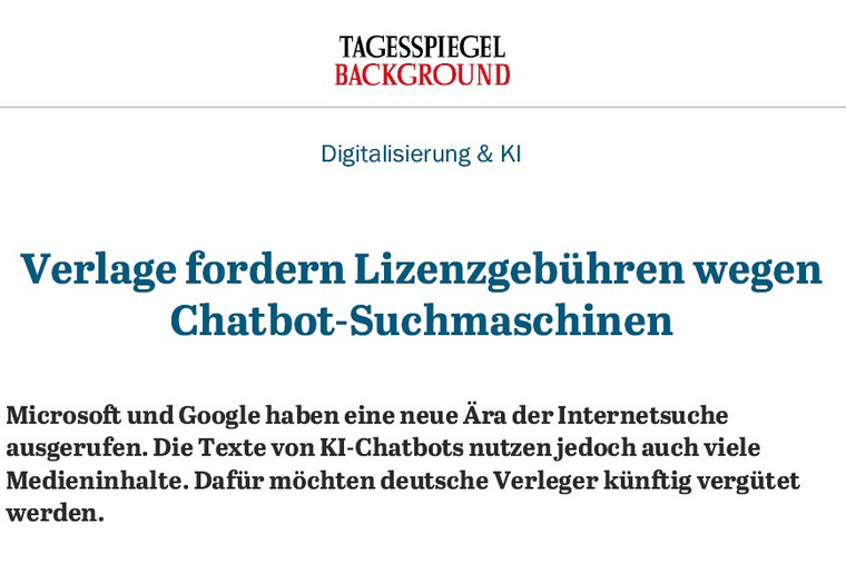 Tagesspiegel: Verlage fordern Lizenzgebühren wegen Chatbot-Suchmaschinen
