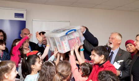 Der Papierhersteller UPM und der Verband Deutscher Zeitschriftenverleger (VDZ) stellen der Stiftung Lesen gemeinsam mehr als 50.000 Euro zur Verfügung, um Vorlese- und Erzählangebote für geflüchtete Kinder und ihre Familien zu ermöglichen. Die erste von bundesweit 75 Medienboxen mit dem Titel "Zusammen lesen – zusammen leben" wurde heute an die Gemeinschaftsunterkunft Konrad-Wolf-Straße des Unionhilfswerks im Berliner Stadtteil Lichtenberg übergeben. Bei dem Termin betonte Helge Braun, Staatsminister bei der Bundeskanzlerin, die Bedeutung von Sprachkompetenz, Lesen und Schreiben für die Integration. Neben VDZ-Hauptgeschäftsführer Stephan Scherzer, unterstrichen auch die Moderatorin und Lesebotschafterin Miriam Pielhau sowie Sabine Uehlein, Geschäftsführerin Programme und Projekte der Stiftung Lesen, die Bedeutung des Lesens und Vorlesens für Integration und bedankten sich für das Engagement von UPM, vertreten durch Winfried Schaur, Vorstandsmitglied von UPM.