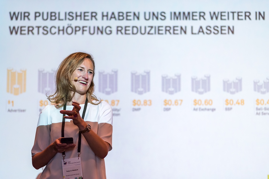 Dr. Tanja zu Waldeck, COO in der Geschäftsführung von BurdaForward, gab einen Überblick über die aktuelle Marktlage: „Während Facebook, Google und Amazon die Haie im Medien- und Advertisingmarkt sind, sind wir als einzelne Verlage nur noch kleine Fische. Es ist nicht einfach, in diesem Bereich profitabel zu arbeiten, wenn überall Intermediäre dazwischenstehen, so dass am Ende von jedem Werbe-Euro nur 40 Cent beim Publisher landen.“ Waldeck forderte mehr Kooperationen und eine stärkere Zusammenarbeit. „So können wir unabhängiger von Google und Facebook werden. Im Publisher Netzwerk sind wir gemeinsam stark!“ Als Beispiel nannte Waldeck die Gründung der „Conunity“, der Content Community von BurdaForward, der mittlerweile 130 Partner angehören.