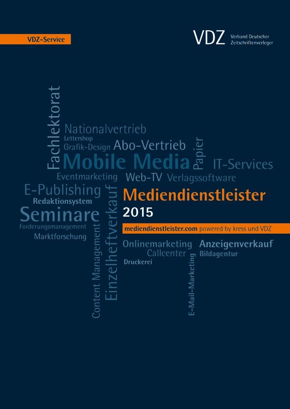Die Inhalte des Mediendienstleisterverzeichnisses sind auch über die VDZ-Website sowie über den Branchen-Informationsdienst www.kress.de recherchierbar. Mitglieder des VDZ erhalten die Printausgabe des Mediendienstleisterverzeichnisses in diesen Tagen kostenfrei zugesendet. Weitere Exemplare können bei Anett Breitsprecher (Telefon +49 (0)30 - 72 62 98 158; E-Mail: a.breitsprecher(at)vdz-akademie.de) ebenfalls kostenfrei bestellt werden.