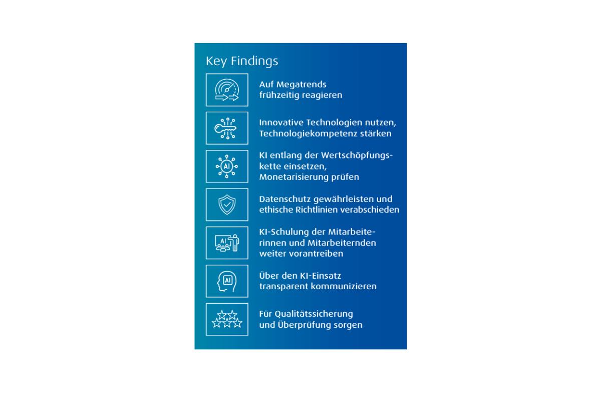 Datenschutz, menschliche Kontrolle und Qualitätssicherung gelten als zentrale Voraussetzungen für den verantwortungsvollen KI-Einsatz. Besonders wichtig sind laut der Studie der Ausschluss vertraulicher Informationen und personenbezogener Daten (80 Prozent), menschliche Verantwortlichkeit („Human in the Loop“ – 68 Prozent), Schulungen (64 Prozent) und Qualitätskontrollen (63 Prozent). Transparenz über den KI-Einsatz und klare Richtlinien werden mehrheitlich als zentral bewertet.