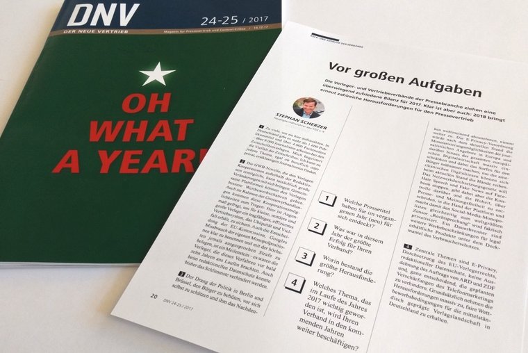 Zentrale Themen sind E-Privacy, Durchsetzung des EU-Verlegerrechts, redaktioneller Datenschutz, keine Ausdehnung des Auftrags von ARD und ZDF und ganz entscheidend, die geplanten Verschärfungen des Telefonmarketings zu verhindern. Grundsätzlich nehmen die Herausforderungen massiv zu, faire Wettbewerbsbedingungen für die mittelständisch geprägte Verlagslandschaft in Deutschland zu erhalten. //