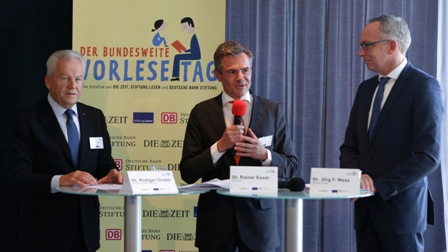 Vorlesen trägt zum Austausch zwischen Eltern und Kindern bei und stärkt so familiäre Bindungen. Dies zeigt die Vorlesestudie 2014 der Stiftung Lesen, der Wochenzeitung DIE ZEIT und der Deutsche Bahn Stiftung. Die Ergebnisse präsentierten Dr. Rüdiger Grube (Vorstandsvorsitzender der Deutschen Bahn AG und Beiratsvorsitzender der Deutsche Bahn Stiftung gGmbH), Dr. Rainer Esser (Geschäftsführer ZEIT Verlagsgruppe), Dr. Jörg F. Maas (Hauptgeschäftsführer der Stiftung Lesen) und Dr. Simone C. Ehmig (Leiterin des Instituts für Lese- und Medienforschung der Stiftung Lesen) am 29.10. in Berlin. Die Vorstellung der Studie bildet zugleich den Auftakt zum elften Bundesweiten Vorlesetag, der am 21. November 2014 stattfindet.