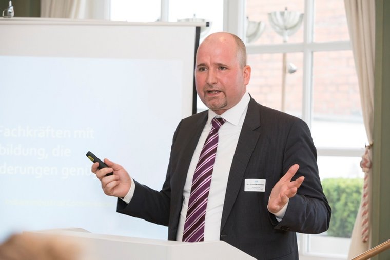 Auf welche Aspekte ein qualifiziertes Aus- und Weiterbildungsangebot Wert legen muss, erklärte im Anschluss Dr. Robert Arsenschek, der Direktor der Akademie der Bayerischen Presse. Es müsse den Mitarbeitern die Gelegenheit geben, vorhandenes Wissen aufzufrischen, zusätzliche Kompetenzen zu erwerben und zu einem neuen Denken zu finden. Gerade letzteres sei angesichts der Digitalisierung wichtig, so Arsenschek. "Die Medien befinden sich im größten Umbruch ihrer Geschichte. Niemand weiß, wie die Welt in fünf Jahren aussieht."