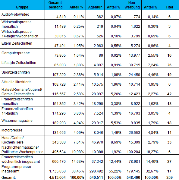 WBZ-Auflagenstatistik für das 2. Halbjahr 2010