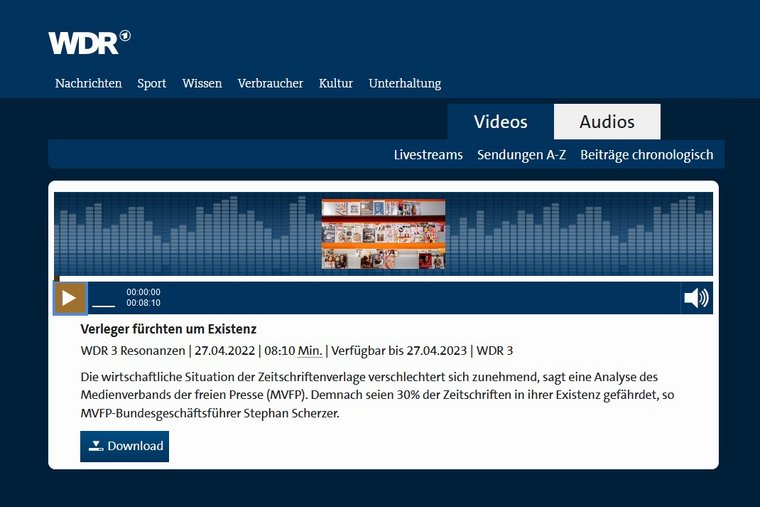 WDR 3/Resonanzen: „Verleger fürchten um Existenz“