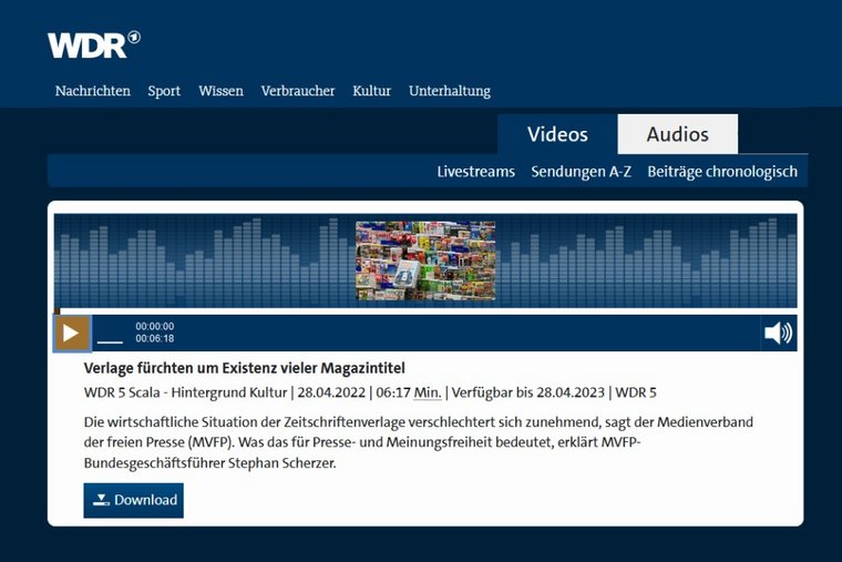 WDR 5/Scala: „Verlage fürchten um Existenz vieler Magazintitel“