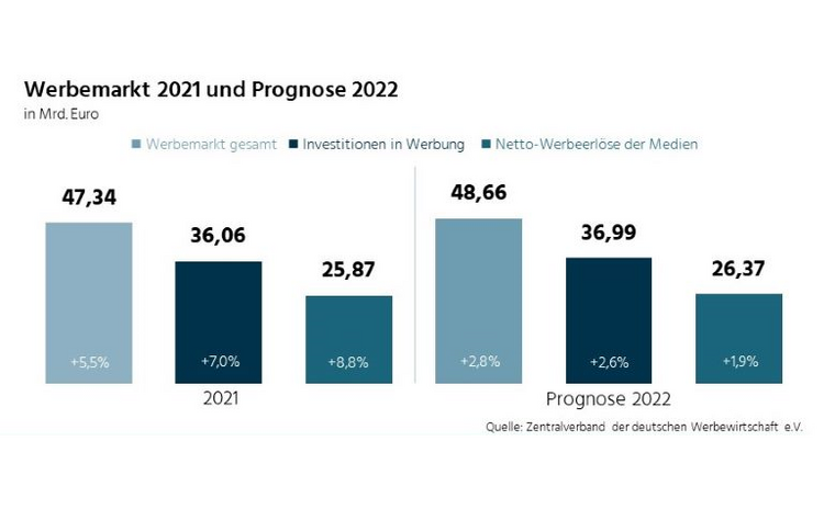 ZAW-Marktprognose 2022 und Ausblick 2023: Werbemarkt 2022 mit leichtem Plus, sorgenvoller Ausblick auf 2023