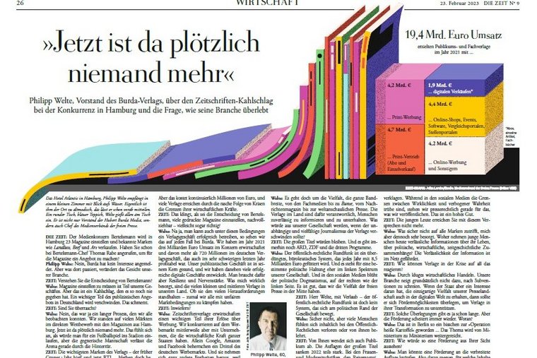 Philipp Welte, Vorstandsvorsitzender des Medienverbands der freien Presse (MVFP), sprach im ZEIT-Interview zur Bedeutung des Journalismus in den Verlagen, die Vielfalt der Presselandschaft in Deutschland und die Dringlichkeit, über staatliche Fördermöglichkeiten nachzudenken: