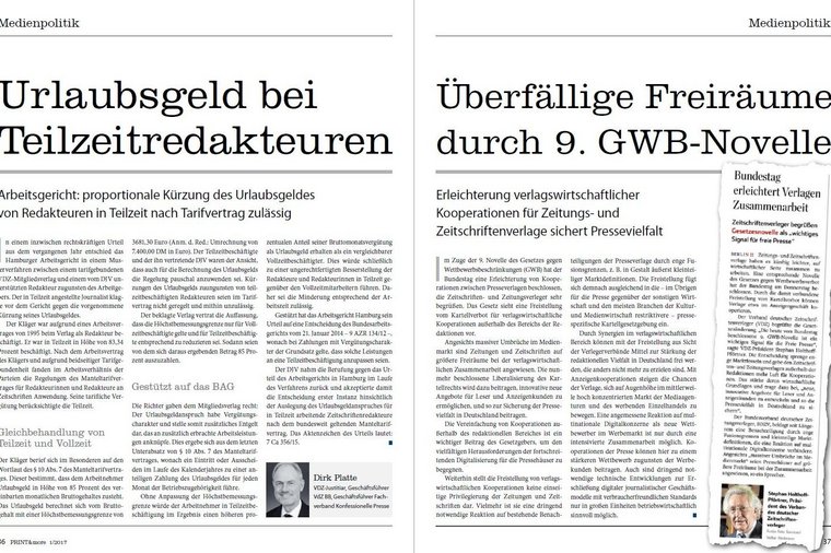 Das Jahr 2017 ist ein politisch und verlegerisch anspruchsvolles Jahr. Für Verlage ist es aber auch die Chance, Flagge zu zeigen und die Leistungsfähigkeit der Presse zu unterstreichen. "In der von Suchmaschinen und sozialen Medien unübersichtlich organisierten Medienlandschaft ist die Zeitschrift zentraler Anker", so Stephan Scherzer im Editorial.