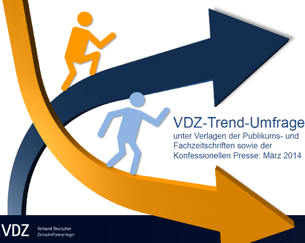 Nach der VDZ-Trendumfrage 2014 unter den maßgeblichen Mitgliedsverlagen rechnet die Zeitschriftenbranche mit einem im Umsatz stabilen Jahr. Bei Anzeigen und Vertrieb im Printbereich wird dabei ein leichter Rückgang und im digitalen und sonstigen Geschäft ein Zuwachs erwartet, der stärker ausfallen soll als in den Vorjahren. Die Gründung neuer erfolgreicher Titel und die Erhöhung der Copypreise verhindern größere Verluste im Vertrieb.