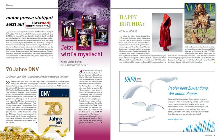 Das Grundgesetz ist auch Aufhänger für das diesjährige VDZ Pressefreiheitsmotiv, inspiriert vom runden Jubiläum. Stephan Scherzer erklärt dazu im Editorial: „Der VDZ setzt sich erfolgreich für Freiheit, Vielfalt und Wettbewerb ein. Diese Werte wurden schon immer in vielfältiger Weise herausgefordert, infrage gestellt und mussten deshalb verteidigt werden. Der Druck war aber schon lange nicht mehr so groß und kam von so vielen Seiten wie in den vergangenen Jahren. Ein starkes Zeichen für die Presse- und Meinungsfreiheit ist die Kampagne des VDZ für Pressefreiheit.“