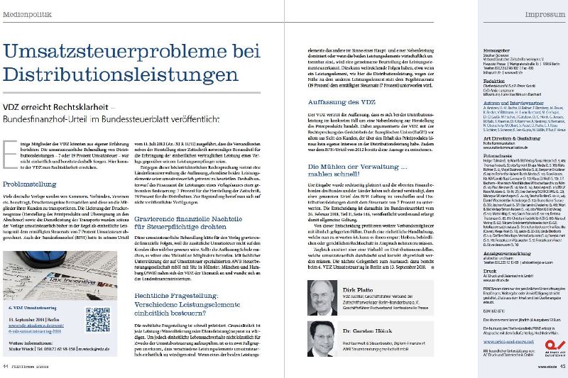 Auf insgesamt zehn Seiten bietet die Ausgabe einen ausführlichen Rückblick auf den Kongress der Fachpresse und den Tag der Pressefreiheit. Passend dazu liegt der aktuellen Ausgabe ein großes Wendeposter mit den neuen VDZ-Pressefreiheitsmotiven bei. Dank gilt hierbei der freundlichen Unterstützung unseres Partners AZ Druck.
