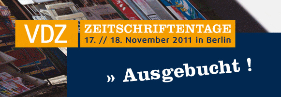 Die Zeitschriftentage und die Publishers‘ Night am 17. und 18.11.2011 sind ausgebucht. Die Anmeldezahlen liegen weit über denen des Vorjahres und zeugen vom hohen Interesse für die verlegerischen Fragen. Zu den Schwerpunkten der Zeitschriftentage gehören unter anderem wichtige strategische Themen wie der „Wettbewerbsfaktor Innovation“, der „War for talents“, die erfolgreiche Präsenz im Ausland sowie Impulse für das Anzeigen- und Vertriebsgeschäft.