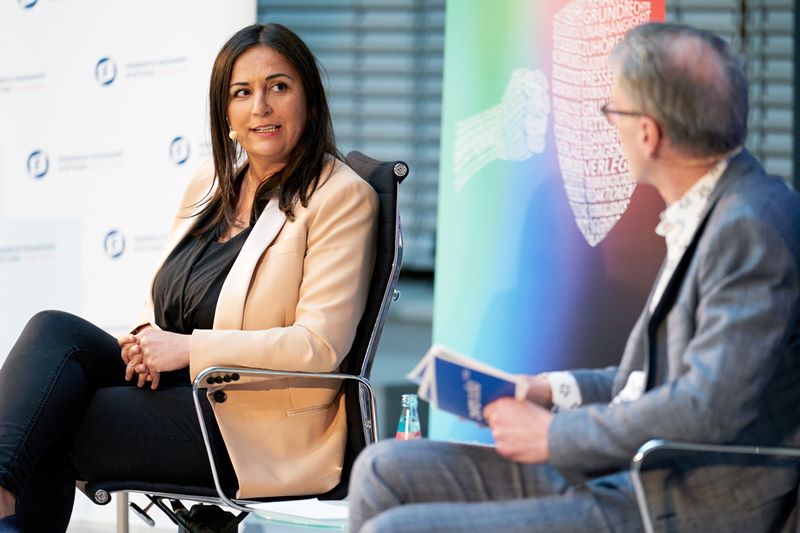 Müssen wir uns um die Pressefreiheit Sorgen machen? Deutschland ist im Ranking der Pressefreiheit von Reporter ohne Grenzen um zwei Plätze auf Platz 13 abgerutscht – vor allem aufgrund der stark gestiegenen Zahl von tätlichen Angriffen auf Pressevertreterinnen und -vertreter. Düzen Tekkal bejahte diese Frage und verwies darauf, dass viele Kolleginnen und Kollegen sich die Frage stellten, worüber sie noch berichten „dürften“. Gleichzeitig warb sie für differenzierte Sichtweisen und forderte eine größere Sensibilität im Umgang mit bislang in der veröffentlichen Meinung unterrepräsentierten Gruppen ein.