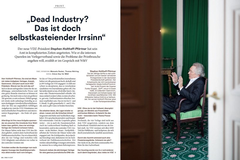 VDZ-Präsident Dr. Stephan Holthoff-Pförtner im W&V-Interview | erschienen in Werben und Verkaufen vom 27.02.2017