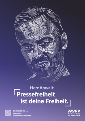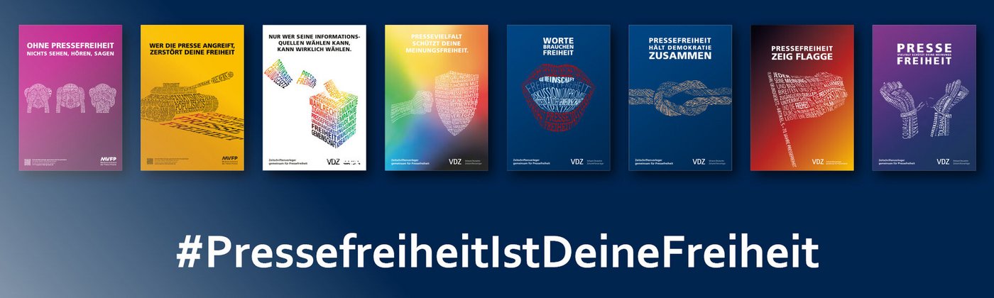 Seit dem Anschlag auf die Redaktion des französischen Satiremagazins Charlie Hebdo im Jahr 2015 rückt der MVFP im Zuge seiner Pressefreiheits-Kampagne mit jährlich neuen Motiven die Gefährdung der Presse- und Meinungsfreiheit in den Mittelpunkt. Dank der Kooperation mit zahlreichen MVFP-Mitgliedsverlagen und der Wall GmbH werden die Motive im Print- und Digitalformat sowie deutschlandweit auf digitalen Werbeflächen zu sehen sein und erreichen so ein Millionenpublikum.