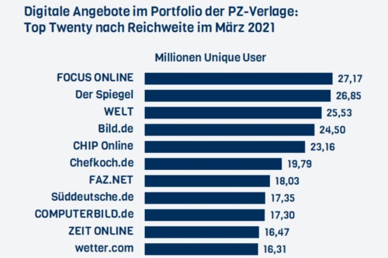 Das Ranking der reichweitenstärksten Verlagsangebote wird wie bisher von vier Nachrichtenseiten angeführt (Grafik unten). Die Reihenfolge hat sich…