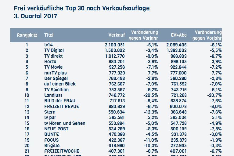 Die bei PZ Online gelisteten Zeitschriften verkauften im 3. Quartal 128 Millionen Exemplare. Das waren saisonbedingt rund sechs Millionen Exemplare…