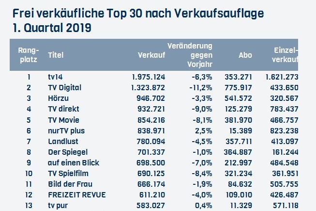 Quartalsbilanz: Von den dreißig Zeitschriften-Beststellern büßen die meisten Titel gegen Vorjahr Verkaufsauflage ein (Tabelle unten). Tröstlich ist…