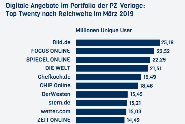AGOF im März: Mit über 25 Millionen Unique Usern führt Bild.de im März das Ranking der digitalen Verlagsangebote an (Grafik unten). Dahinter folgen…