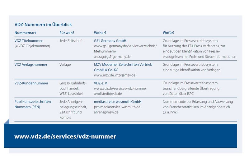 VDZ-Nummer, Vertrieb, Anzeigenbelegung, Branchenausweisung, EDI-Press-Verfahren