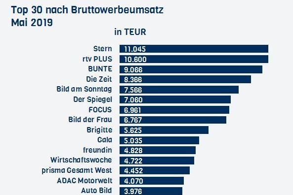 Werbung im Mai: Nach Bruttowerbeumsatz ist der Stern im Mai die Nummer Eins unter allen Zeitschriften, Wochenzeitungen und Supplements. Er behauptet…