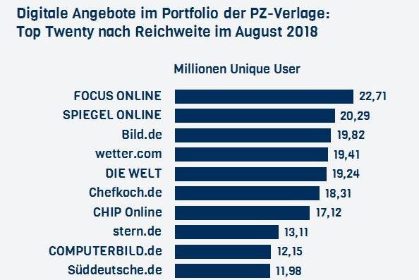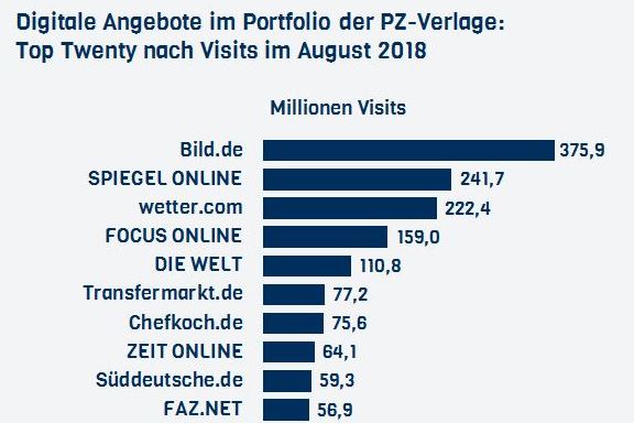 Die Angebote der PZ-Verlage verbuchten im August insgesamt 2,28 Milliarden Visits, geringfügig weniger als im Juli, aber 71 Millionen oder drei…