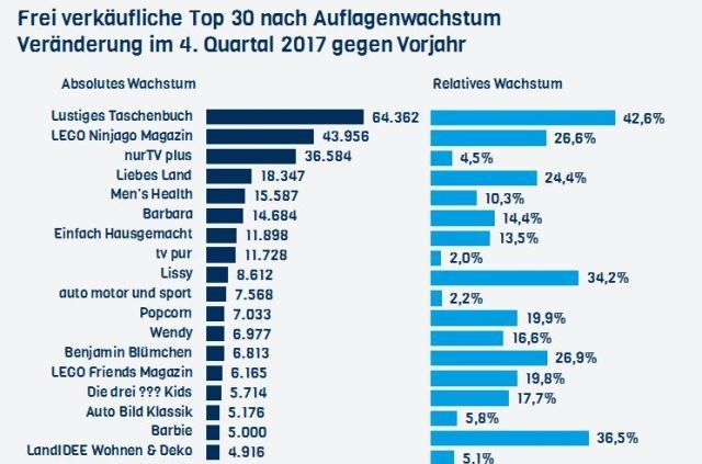 Absolut und relativ erzielte Egmont Ehapas Lustiges Taschenbuch im 4. Quartal 2017 unter allen frei verkäuflichen Zeitschriften das höchste Wachstum…