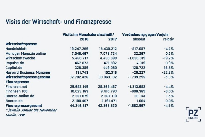 Visits der Wirtschafts- und Finanzseiten: Über 70 Millionen Visits können die zehn Publikationen aus Wirtschaft und Finanzen aus dem…