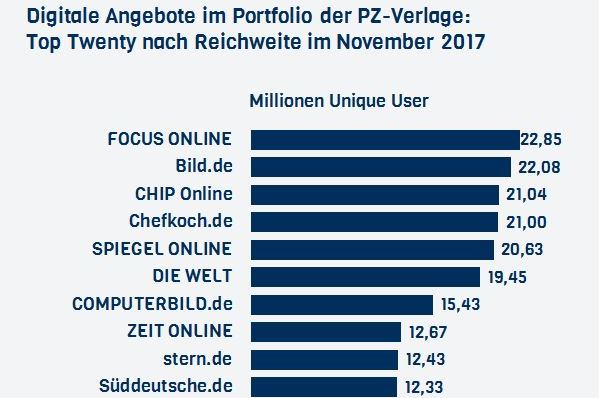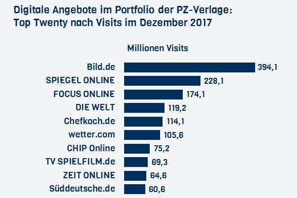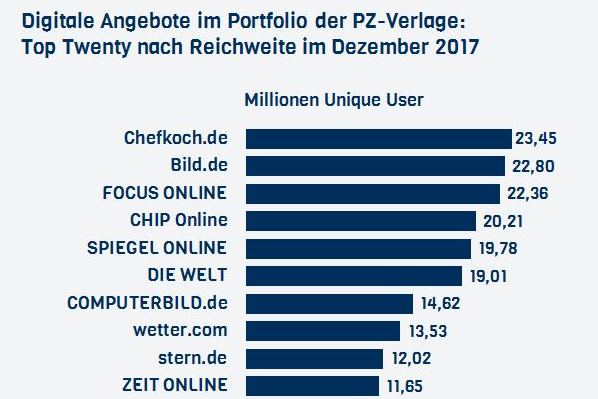 Im Dezember erzielten die Digitalangebote im Portfolio der PZ-Verlage eine Bruttoreichweite von 403 Mio. - 46 Mio. oder 13 Prozent mehr als 2017.
