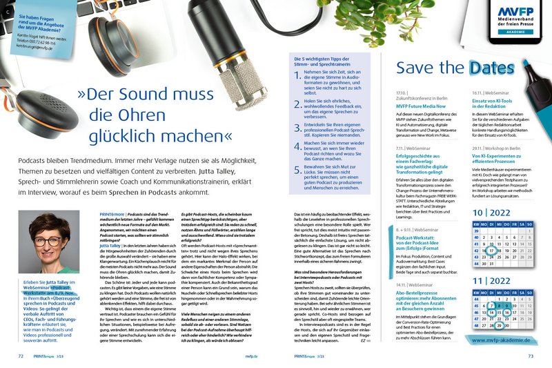In Interview mit PRINT&more erklärt Jutta Talley, Sprech- und Stimmlehrerin sowie Coach und Kommunikationstrainerin, worauf es beim Sprechen in…