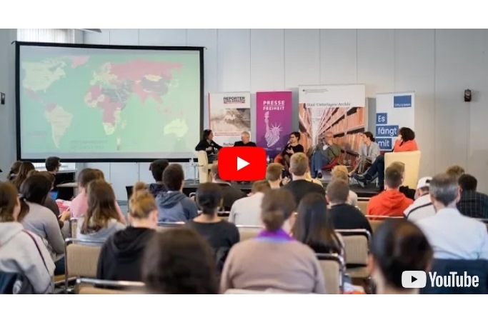 Podiumsdiskussion für Schülerinnen und Schüler in Berlin am 3. Mai 2018, dem Internationalen Tag der Pressefreiheit.