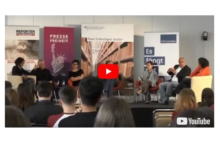 Podiumsdiskussion mit Peter Bandermann, Roland Jahn, Nhi Le, Gemma Pörzgen, Dr. Rudolf Thiemann, Andrea Thilo und Natascha Zeljko.
