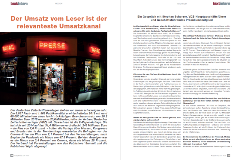Im textintern-Interview mit Grace Pönitz spricht VDZ-Hauptgeschäftsführer Stephan Scherzer über die Auswirkungen der Corona-Krise auf die…
