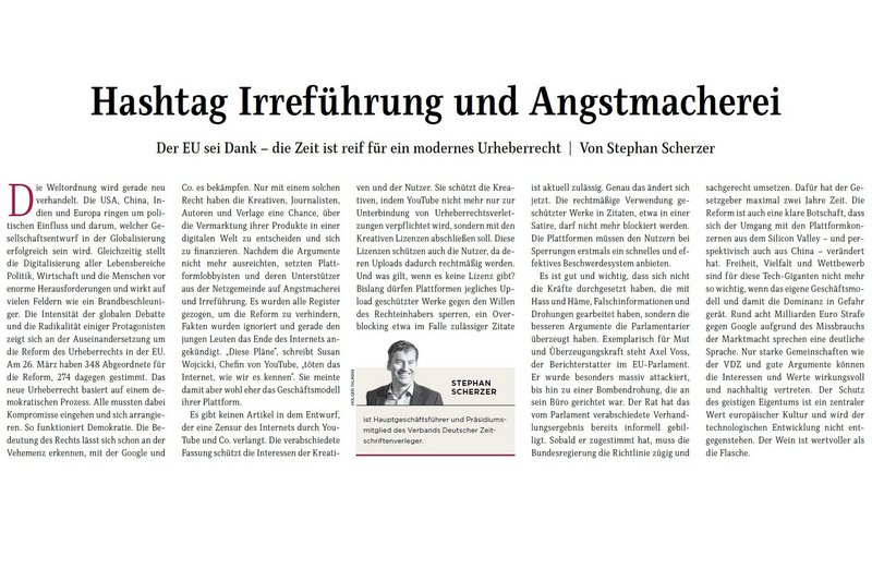 Der EU sei Dank – die Zeit ist reif für ein modernes Urheberrecht | Gastbeitrag von VDZ-Hauptgeschäftsführer Stephan Scherzer, erschienen im HAUPTSTAD…