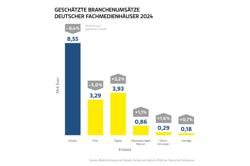 Deutsche Fachmedienhäuser erwirtschafteten 2024 einen Umsatz von 8,55 Milliarden Euro | Digitalerlöse steigen durch Vertriebszuwächse | Digitale…