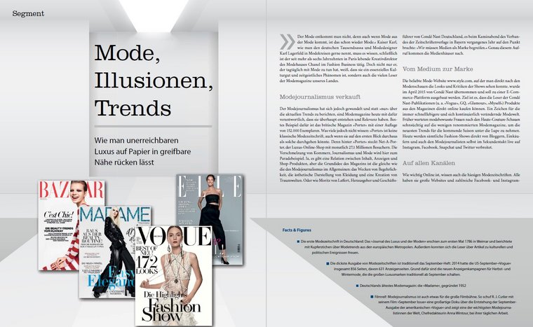 "Der Mode entkommt man nicht, denn auch wenn Mode aus der Mode kommt, ist das schon wieder Mode." Kaiser Karl, wie man den deutschen Tausendsassa und Modedesigner Karl Lagerfeld in Modekreisen gerne nennt, muss es wissen, schließlich ist der seit mehr als sechs Jahrzehnten in Paris lebende Kreativdirektor des Modehauses Chanel im Fashion Business tätig. Doch nicht nur er, der tagtäglich mit Mode zu tun hat, weiß, dass sie ein essenzielles Kulturgut und zeitgeistliches Phänomen ist, sondern auch die vielen Leser der Modemagazine unseres Landes.