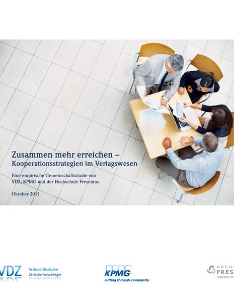 Kooperationen werden zum Wachstumsfaktor. Drei Viertel der Zeitschriftenhäuser haben bereits positive Erfahrungen mit Kooperationen gemacht und wollen sie in den nächsten ein bis zwei Jahren weiter ausbauen. Sie sehen sie als geeignetes Mittel, um Wachstums- und Synergie-Effekte zu erzielen. Wurden Kooperationen bislang vor allem im Printbereich eingegangen, sind sie jetzt auch im Digitalgeschäft im Kommen. Dies sind wesentliche Ergebnisse der neuen Studie „Zusammen mehr erreichen – Kooperationsstrategien im Verlagswesen“ von VDZ, KPMG und der Hochschule Fresenius. Die Ergebnisse wurden am 20. Oktober 2011 offiziell auf den Medientagen München im Rahmen eines Panels vorgestellt. Die Keynote hielt Alexander von Reibnitz, Geschäftsführer Anzeigen und Digitale Medien im VDZ.